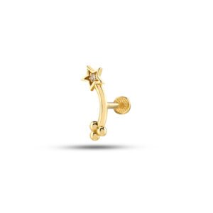 14 Ayar Altın Taşlı Minimal Helix/Kıkırdak Pırlanta Piercing