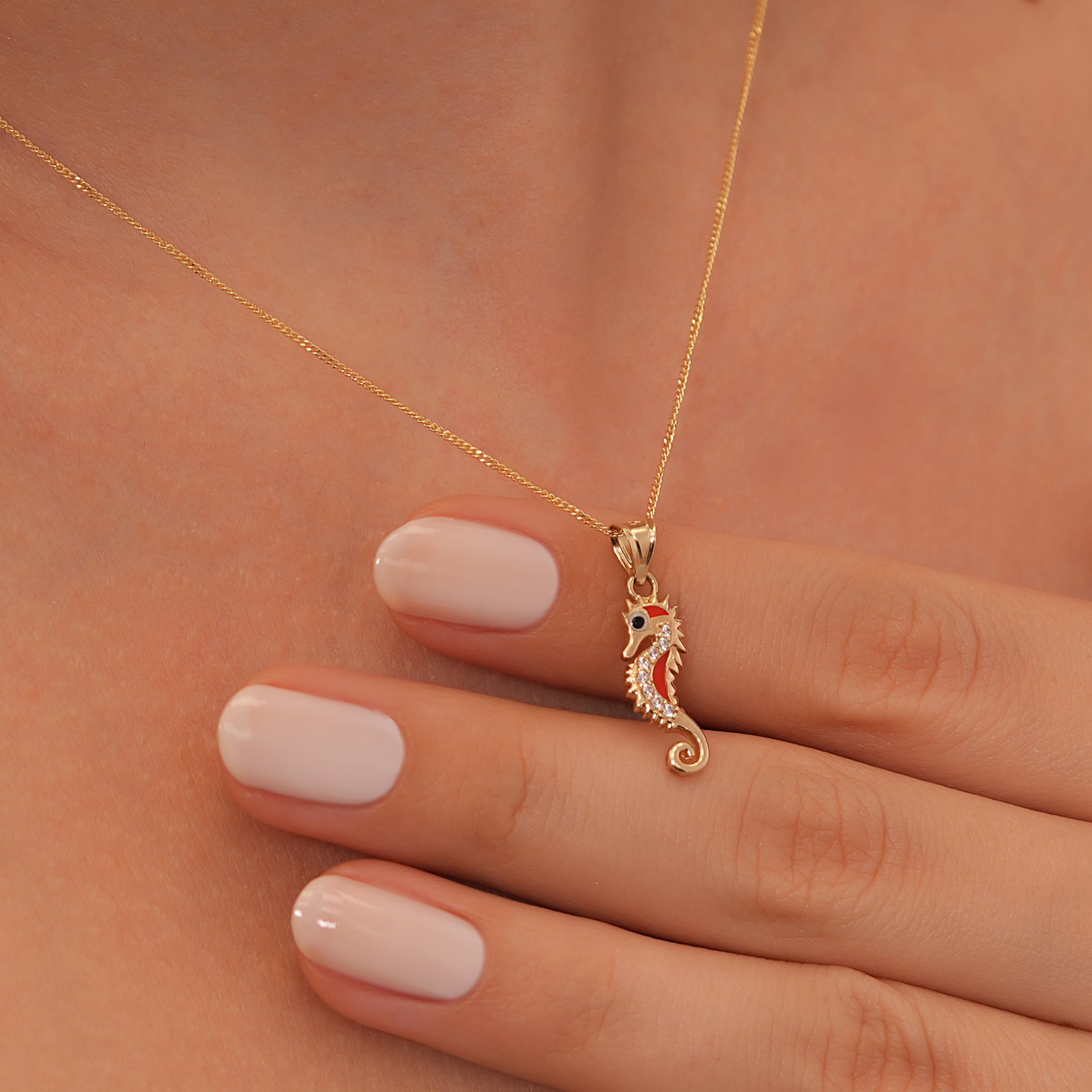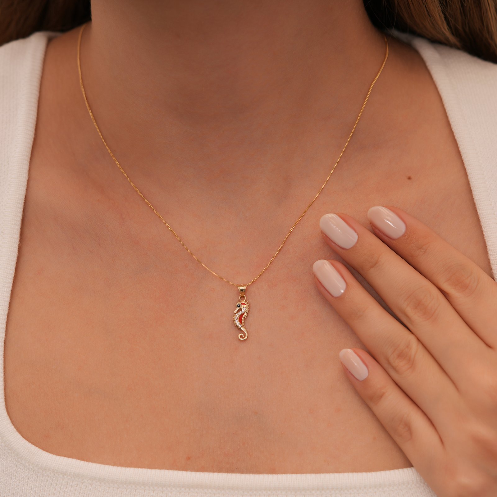 Altın Denizatı Kolye – Kristal Taşlı Okyanus Temalı Kolye