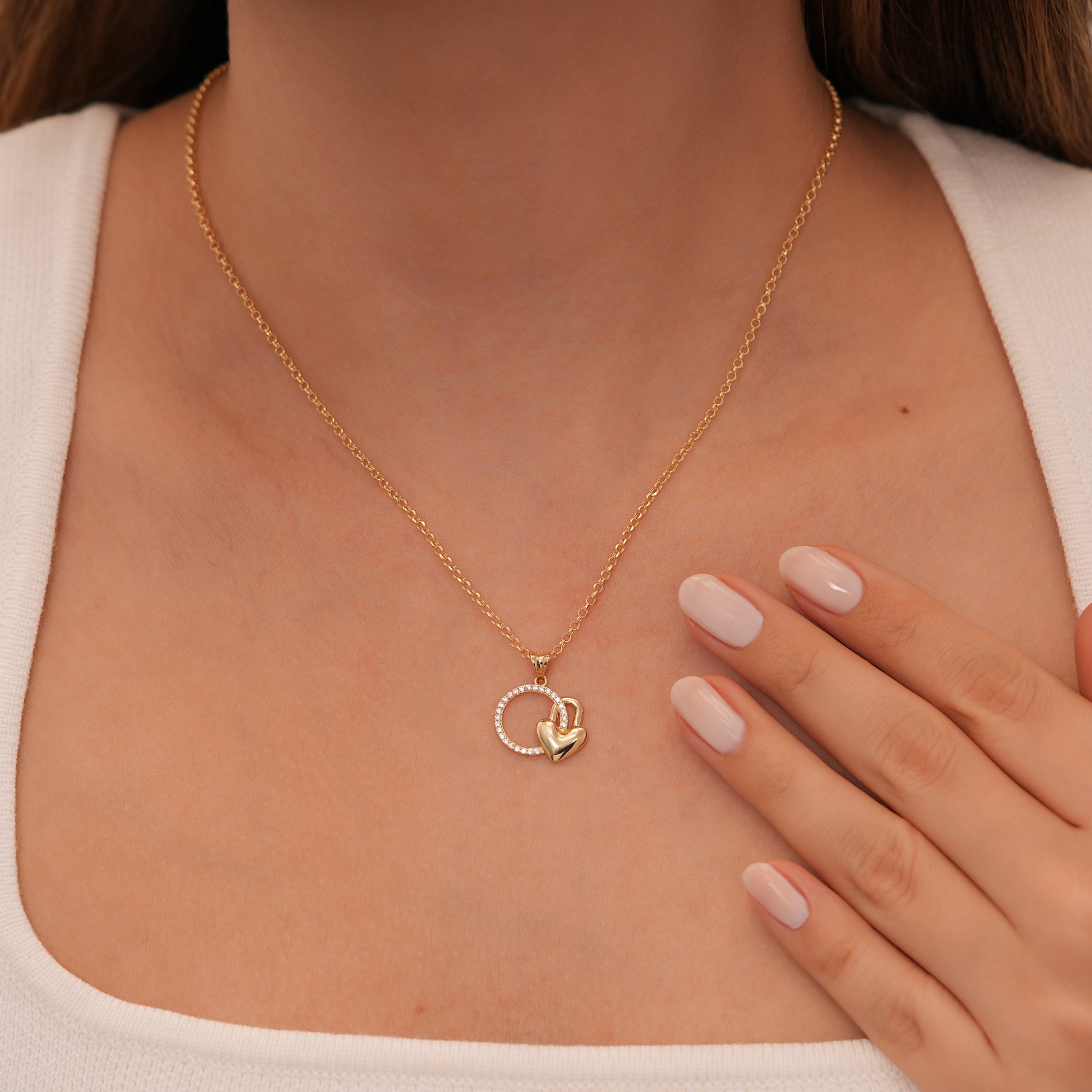Altın Kalp Kilit Kolye – Kristal Detaylı Romantik Minimal Kolye